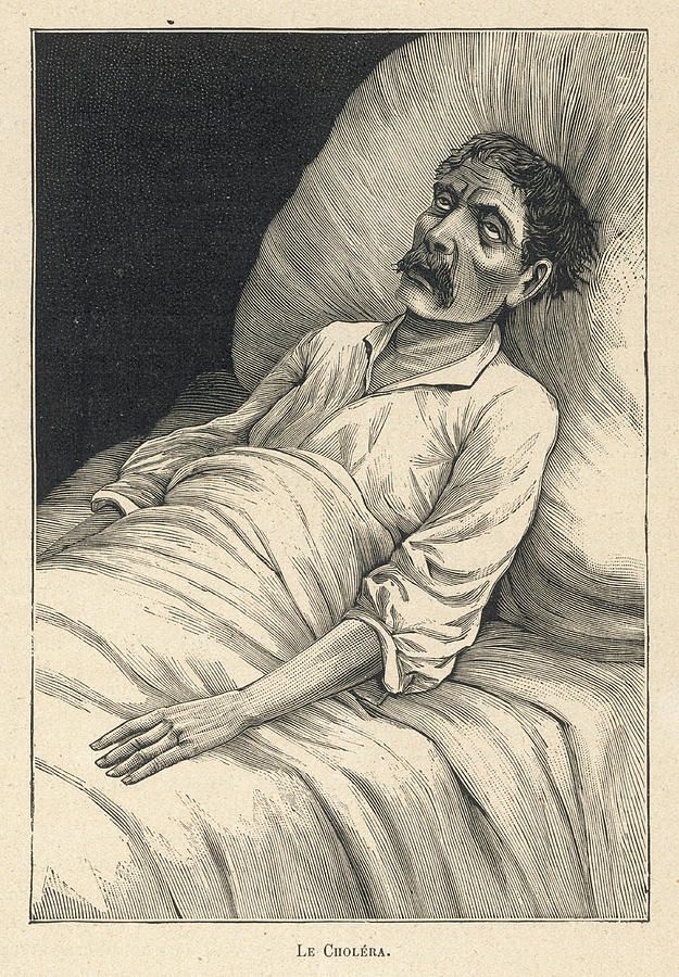 奄奄一息的霍乱病人,取自一幅19世纪的书刊插画