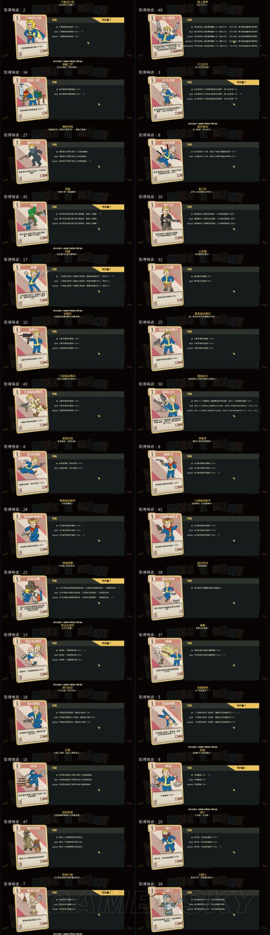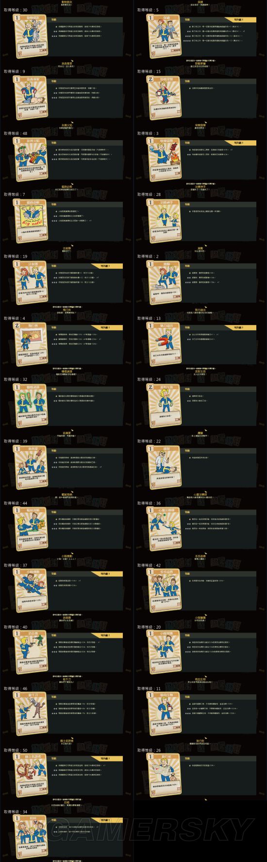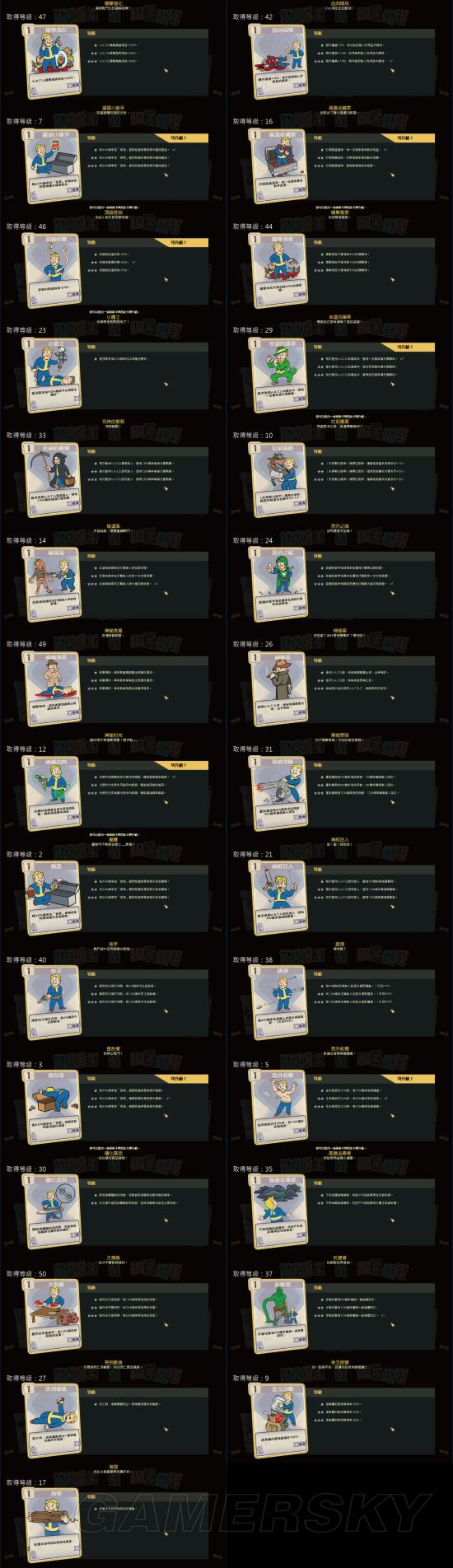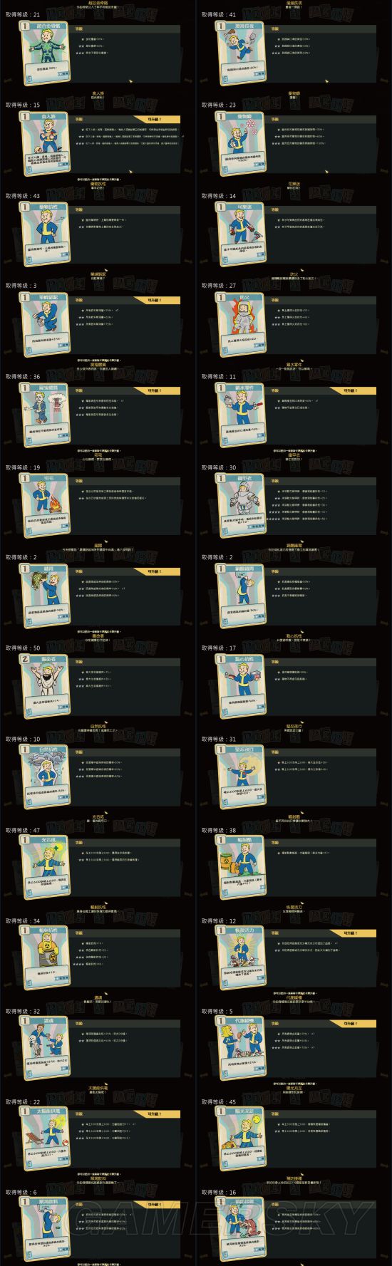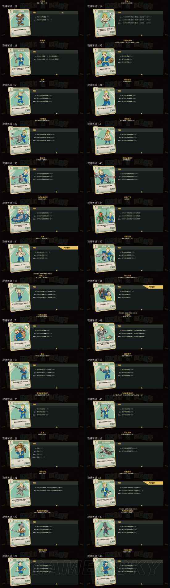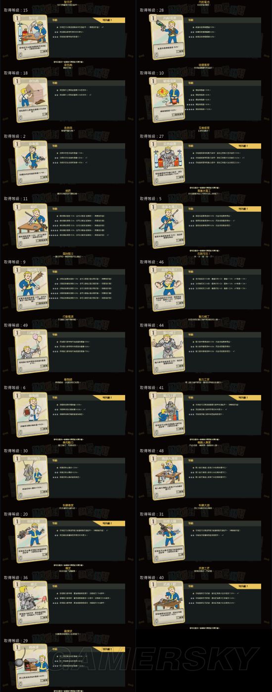 《辐射76》中,玩家可以通过Perk卡来增强自己的能力,那么游戏中有多少Perk卡呢?其效果又如何?下面为大家分享一下由“suny19830403”带来的《辐射76》全Perk卡片效果介绍,一起来看吧。