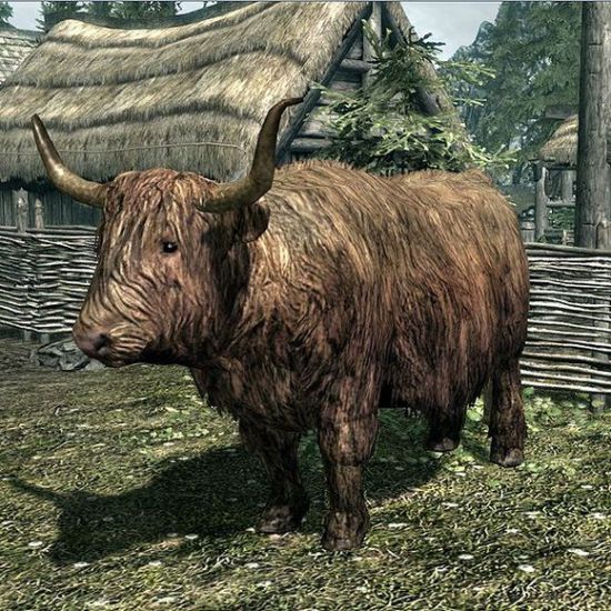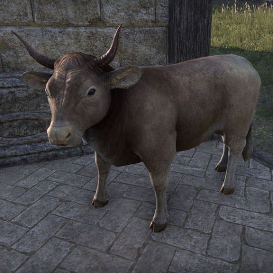 性格温顺的大型家畜,即使遭遇攻击也只会掉头逃跑(泰姆瑞尔没有任何相关的斗牛活动)。广泛饲养于泰姆瑞尔各大农场(除了晨风,那里没有足够的草料)。鉴于泰姆瑞尔欧洲元素居多,牛主要用来提供肉,奶,皮,尚未见过用于耕种。