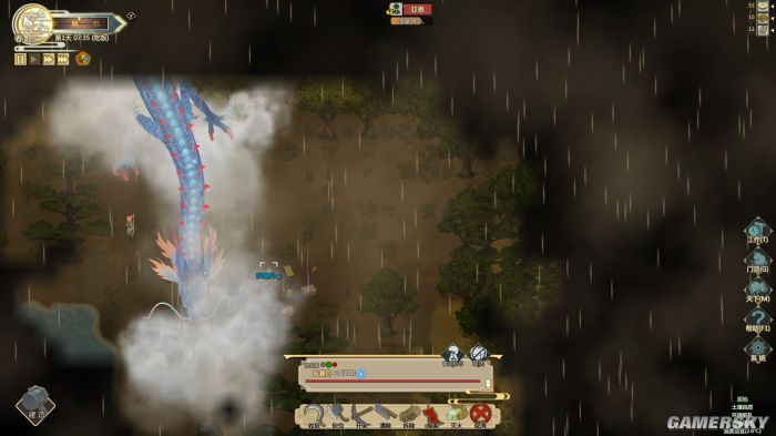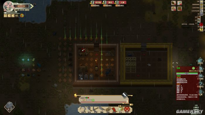 如此设计的好处是让我省去了很多繁琐操作的时间,更能体会到类似放置游戏的休闲规划之趣。并且游戏为关键道具增加了醒目的光柱,在中后期地上铺满密密麻麻物品的时候能让我一目了然。本作植入了一套比较完善的生态系统。角色遵循昼起夜伏的规律,四季变换之时他们也会根据温度而更衣。对于本作几十种植物作物而言,一场春雨可能会让它们扎根的土壤更加肥沃,而一席寒风也有可能让它们草木萧疏。游戏中类似上述这种尽量贴合现实逻辑的设定让每个季节和气候都有着各自的特点,根据它们的变化随时调整下一步计划的过程也无疑拓宽了我的策略空间。