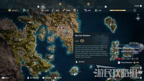 秩序之眼的神教成员击杀完毕后,就可以看到倪克斯的位置。雅典卫城(阿提卡的大雅典区)东南方,狄俄尼索斯剧院附近有个可以俯瞰消息板的大阳台,她就在上面。