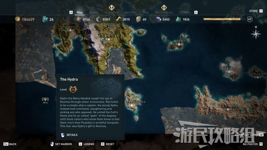 “九头蛇”是统领爱琴海众神的贤者,杀死其麾下的全部神教成员可以进行揭发。他在墨塞尼亚岛的西南侧驾船环行。