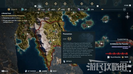 波萨尼亚斯是伯罗奔尼撒联盟的贤者,跟其他人不一样,要揭发他不需要杀死其麾下的全部神教成员——前提是遇到拉戈斯时选择宽恕而不是杀害,否则还要杀死史坦托尔并搜刮其尸体。揭开真面目后,你会看到他现在位于拉科尼亚。