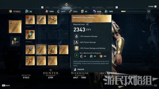 获得方法:波塞冬神殿(希俄斯南方的小岛)的一个宝箱内。