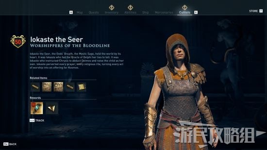 全视者伊俄卡斯忒是血脉崇拜者的贤者,只能通过杀死其麾下的全部神教成员来揭开她的位置。她在希俄斯岛的安瓦托斯废墟里。
