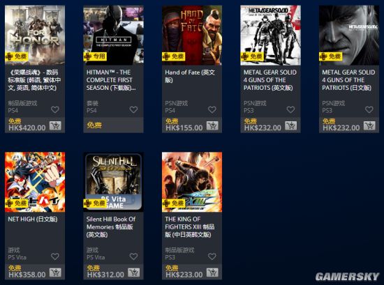 新加入的游戏包括:《合金装备4》(PS3)、《Net High》(PSV)、《寂静岭:回忆之书》(PSV)和《拳皇13》(PS3),在3月9日13:00前都可以进行领取。