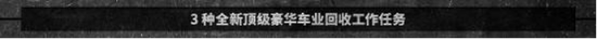 西米恩·耶塔瑞安的顶级豪华车业回收工作再添三个新任务,就在今天加入 GTA 在线模式。在所有顶级豪华车业回收工作中,帮耶塔瑞安先生救出高端载具,将其还给理应拥有它的人,即可赚取双倍 GTA 游戏币和声望值: