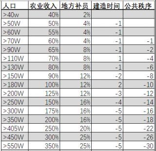 当人口在250W到350W之间时,城市规模最优:补员加成 16%、建造时间-4~-5、公共秩序惩罚-16左右刚好是一个大孔庙+科研能够抵消的程度;农业加成125%~175%区间。这个人口规模在7级城市加2个资源点(200+50+50)达到最优点。