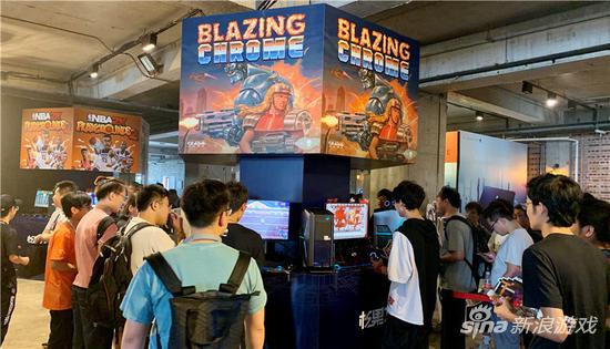 现场还展出了活动主办方CE-Asia发行的《圣女战旗》等数款游戏。其中致敬《魂斗罗》的横版动作射击游戏《炽热合金》(Blazing Chrome)留住了不少玩家的脚步。