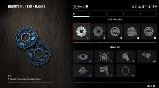 解锁职业等级可以获得职业代币,达到某些等级时,玩家还可以解锁新技能,比如在马背上获得保护的低头闪避赏金猎人技能,或是训练营地犬在有盗贼偷袭营地时发出警告的商贩技能;提升玩家背包的携带上限;或是游玩新职业特定的自由模式活动。每个层次都有一套职业独有的物品,能用职业代币解锁以供购买。