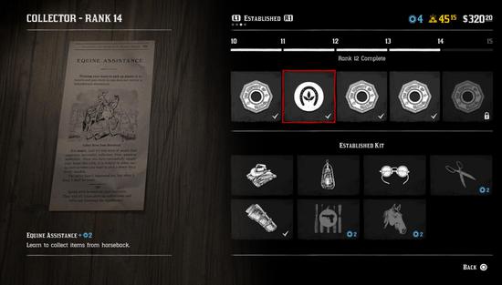 玩家可以收集单件物品然后直接卖给纳扎尔夫人,也可以集齐整个系列以售出更高的价格。随着进度推进,玩家还将解锁进阶搜索技能;更实用的工具,如金属探测器;增加携带上限等福利;骑行时让玩家的马直接采摘草药并传递给玩家的能力,及更多内容。