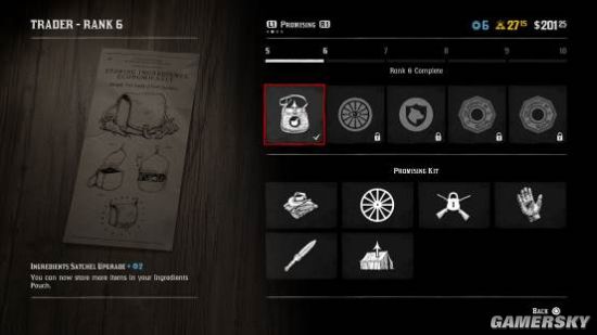 解锁职业等级可以获得职业代币,达到某些等级时,您还可以解锁新技能,比如在马背上获得保护的低头闪避赏金猎人技能,或是训练营地犬在有盗贼偷袭营地时发出警告的商贩技能;提升您背包的携带上限;或是游玩新职业特定的自由模式活动。每个层次都有一套职业独有的物品,能用职业代币解锁以供购买。