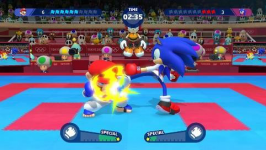 在本作中,马力欧和索尼克他们会进行对打比赛。在规定时间内比拼谁先获得10分。