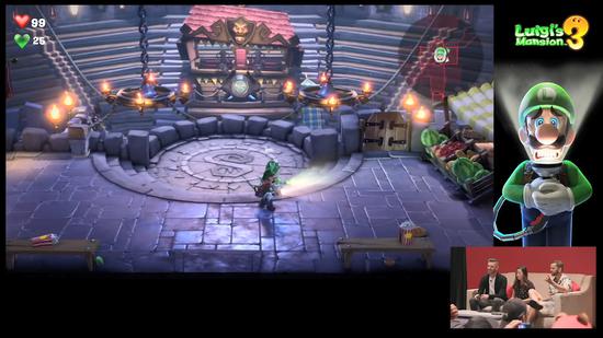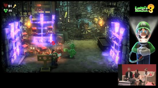 在本周的 Nintendo Minute 直播节目中,游戏创意总监 Bryce Holliday 与主持人一起体验并展示了《路易吉洋馆3》的多人模式实机演示。
