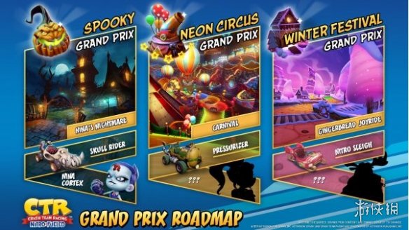 今天(10月2日),出版商Activision和开发商Beenox宣布《古惑狼赛车重制版(Crash Team Racing Nitro-Fueled)》的三个额外的免费大奖赛。分别为幽灵大奖赛(spooky)、霓虹马戏团大奖赛(neon circus)和冬季节大奖赛(winter festival),一起看看吧!