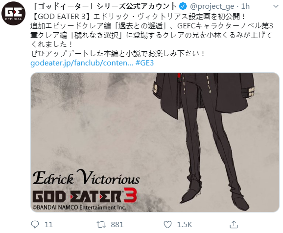万代南梦宫10月31日公布了旗下经典动作游戏新篇《噬神者3》的新角色艾德里克·比克特里亚斯,这也是这位角色的设定图首次亮相,一起来欣赏下。