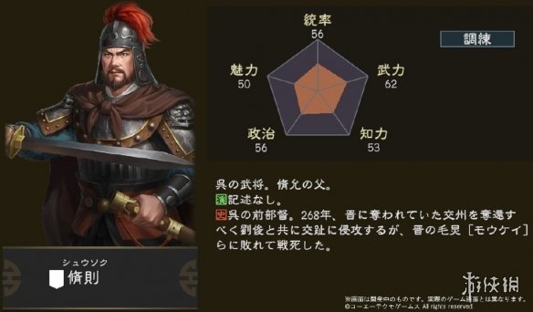光荣特库摩公布了新的《三国志14(Romance Of Three Kingdom 14)》武将描述和人设图,昨天那位“败于毛炅等人战死沙场”的武将是吴国的脩(xiū)则,一个相当平凡的普通武将。