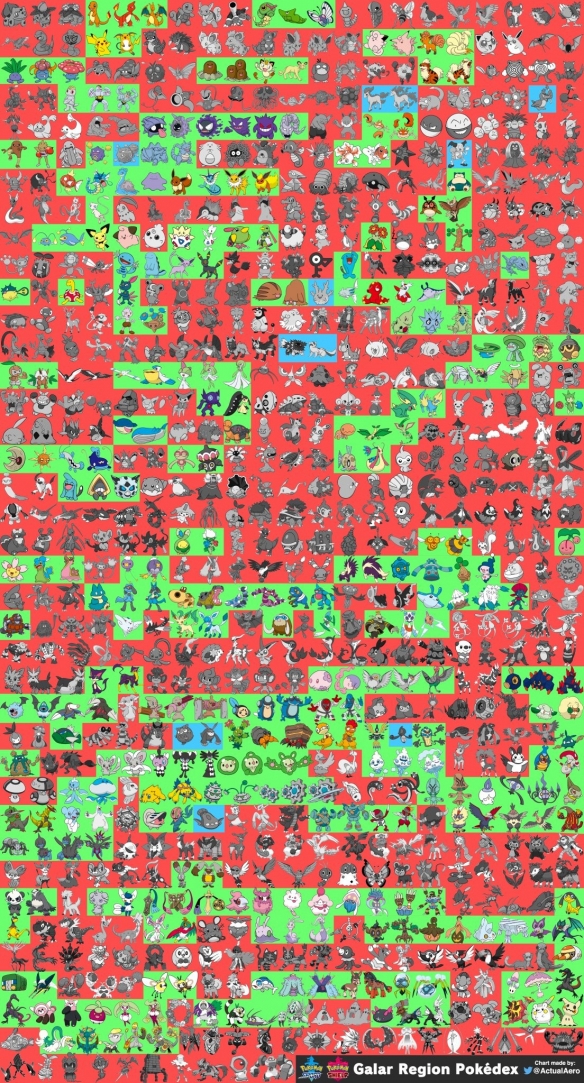 其中绿色的标记的这些宝可梦确认幸存,会在《宝可梦 剑/盾》中亮相。