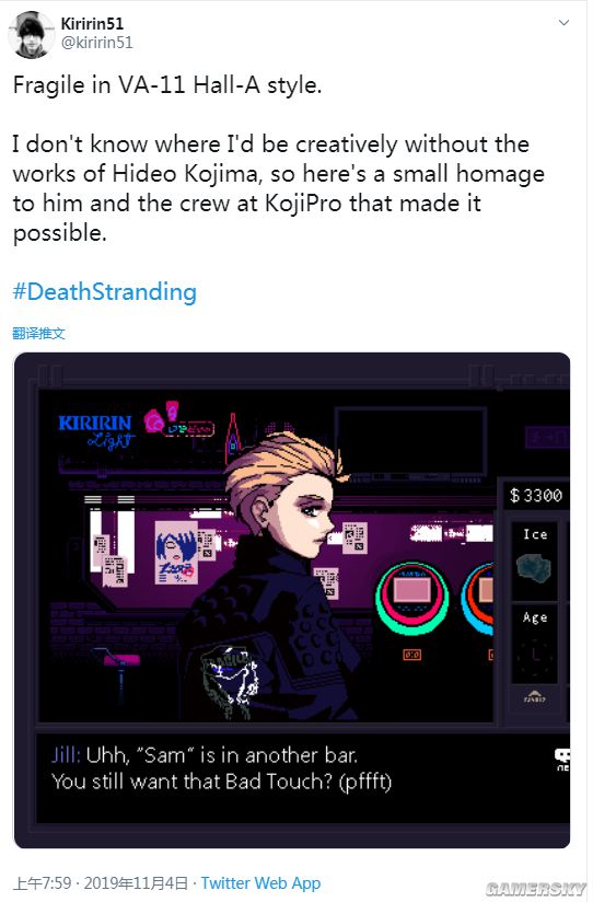 Kiririn51在推文中表示,他无从想象要是没了小岛秀夫,自己的创意又该从何而来。因此他此番创作了一张同人绘画,对小岛秀夫和小岛制作的开发者们致以了敬意。