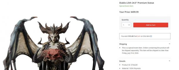 暴雪官方商城现已推出《暗黑破坏神4》24.5英寸莉莉丝手办,手办大小为41x25x62cm,树脂材质,整体采用手绘上色,官方售价499.99美元(约3505元),将于2020年7月31日前发货。