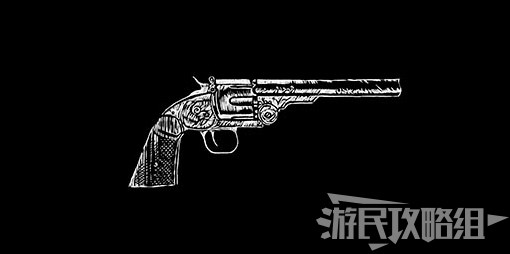 这把老旧的双动式左轮手枪有着发黑的钢架和雕刻着红骷髅的黑色枪柄。枪管上刻有“Vengeance is hereby mine”的字样。