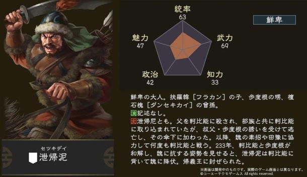 11月6日光荣特库摩介绍了《三国志14》新武将泄归泥的信息,他是魏国武将,一名身负血仇的鲜卑贵族。