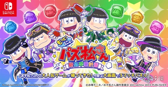 D3P宣布以阿松为主题的三消游戏《更多 新益智阿松 新品毕业计划》已登录Switch平台,其中不但收录了手机版的全部内容,还会包含500种以上的特典语音、并有原创的追加故事等新要素。