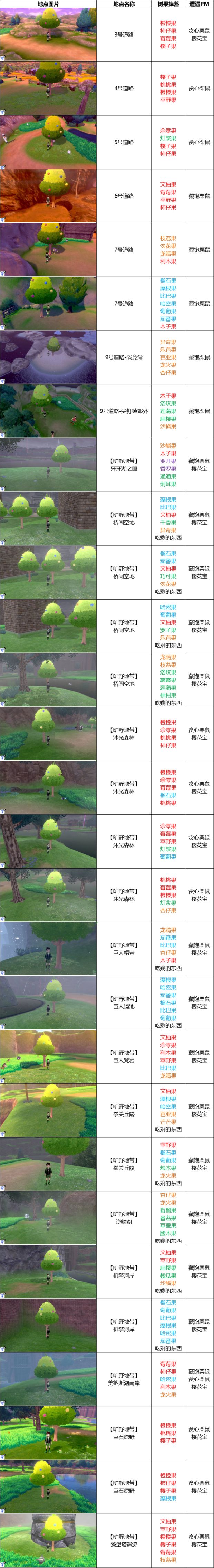 《宝可梦剑盾》中的树果有着许多种类并拥有神奇的效果,让宝可梦食用后可以解除一些异常状态,比如樱子果可以解除宝可梦的麻痹状态。请看下面由“-jerryglc-”带来的《宝可梦剑盾》全树果掉落分布及效果一览,希望对大家有用。