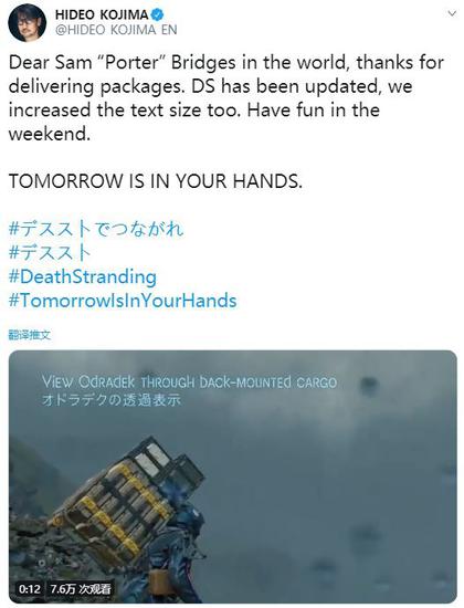 早前小岛工作室承诺的《死亡搁浅》12月更新内容现已上线,小岛秀夫也在推特上发布了相关内容,希望玩家们能够享受一个愉快的“送货”周末。