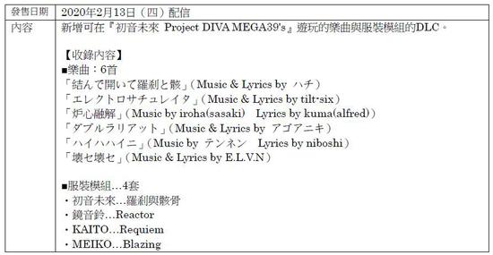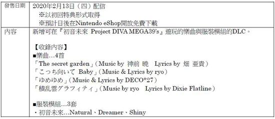 SEGA Games宣布Nintendo Switch专用游戏软件《初音未来 Project DIVA MEGA39‘s》于今日(2月13日)正式发售,并同步释出体验版。