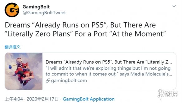 近日,由Media Molecule打造的沙盒游戏《梦境(Dreams)》终于与大家见面,根据Gamingbolt报道,Media Molecule的联合创始人Alex Evans表示,《Dreams》已经可以在PS5上运行,不过目前并没有登录PS5的打算。