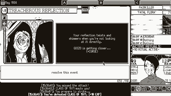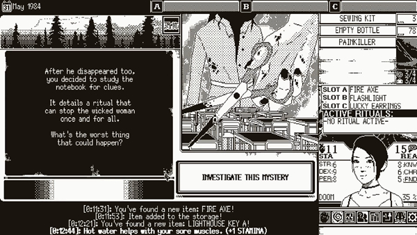 《恐怖的世界》故事设定在20世纪80年代的日本海边小镇,现实世界开始崩溃,彪悍的小生物开始出现,致使海边小城陷入绝境。游戏包含轻度的Rogue要素,使用回合制战斗系统,通过对于事件卡牌的安排解锁不同的线索和秘密,共有5名角色可选。