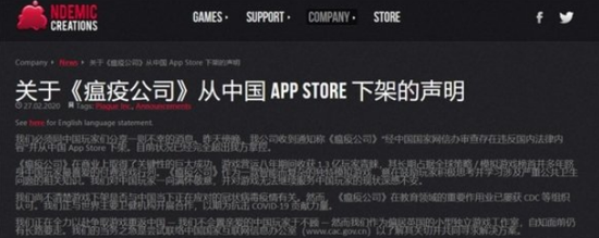 前些日子我们曾报道过曾连续多日登顶苹果付费游戏榜的游戏《瘟疫公司(Plague Inc。)》从国服Apple Store下架的事情。近日《瘟疫公司》的开发商就此事做出了回应。