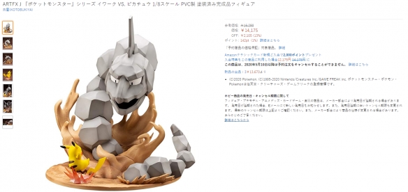 寿屋ARTFX J在去年曾官宣将推出根据这个名场景打造的手办,就叫“皮卡丘vs大岩蛇”,而如今这款手办的样品已经上色,开始接受全球预约了。根据亚马逊上的信息,这款1/8比例手办将于2020年9月出货,并且可以拆分成皮神+大岩蛇两部分分开展示。手办的亚马逊定价为14175日元(900+RMB)。