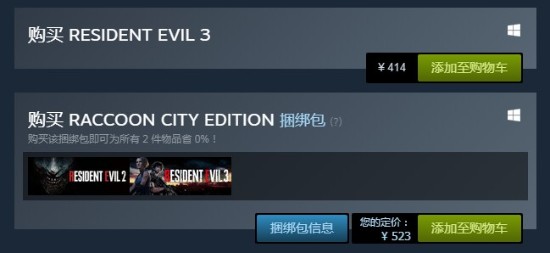 《生化危机3:重制版》国区售价414元,支持中文,游戏介绍:不管逃到哪里也会被追至绝路。 浣熊市发生突如其来的生物灾害,更为危险的武器被投入到这个逐渐毁灭的城镇中…… 多重的危机,九死一生的惊险动作和重新构建的逃生剧情,一切超乎你的想象。 你能逃离这片绝望吗? 同时收录另一款逃生游戏《Resident Evil Resistance》。