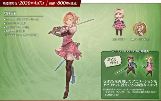 ·可在《GRANBLUE FANTASY》中使用的特典 职业皮肤