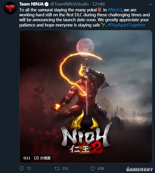 Team NINJA官推表示,《仁王2》游戏团队正在为游戏的第一个DLC努力工作,并且即将在近期公布发售日期。