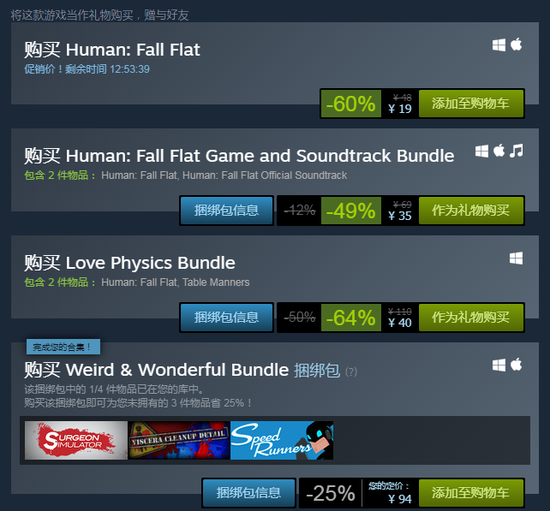 《人类:一败涂地》Steam平台开启5折促销活动,平史低折扣价19元,活动仅限今日!