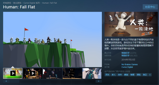 《人类:一败涂地》是一款与众不同的基于物理特性的开放结局解谜探索游戏,2016年7月正式发售。游戏在Steam平台为“特别好评”,好评率93%!