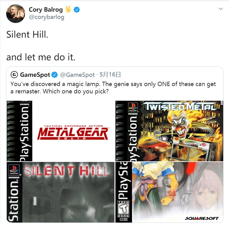 《战神4》制作人Cory Balrog回复称,很想要《寂静岭》1代的重制版,而且Cory Balrog想要自己制作《寂静岭》1代的重制版。