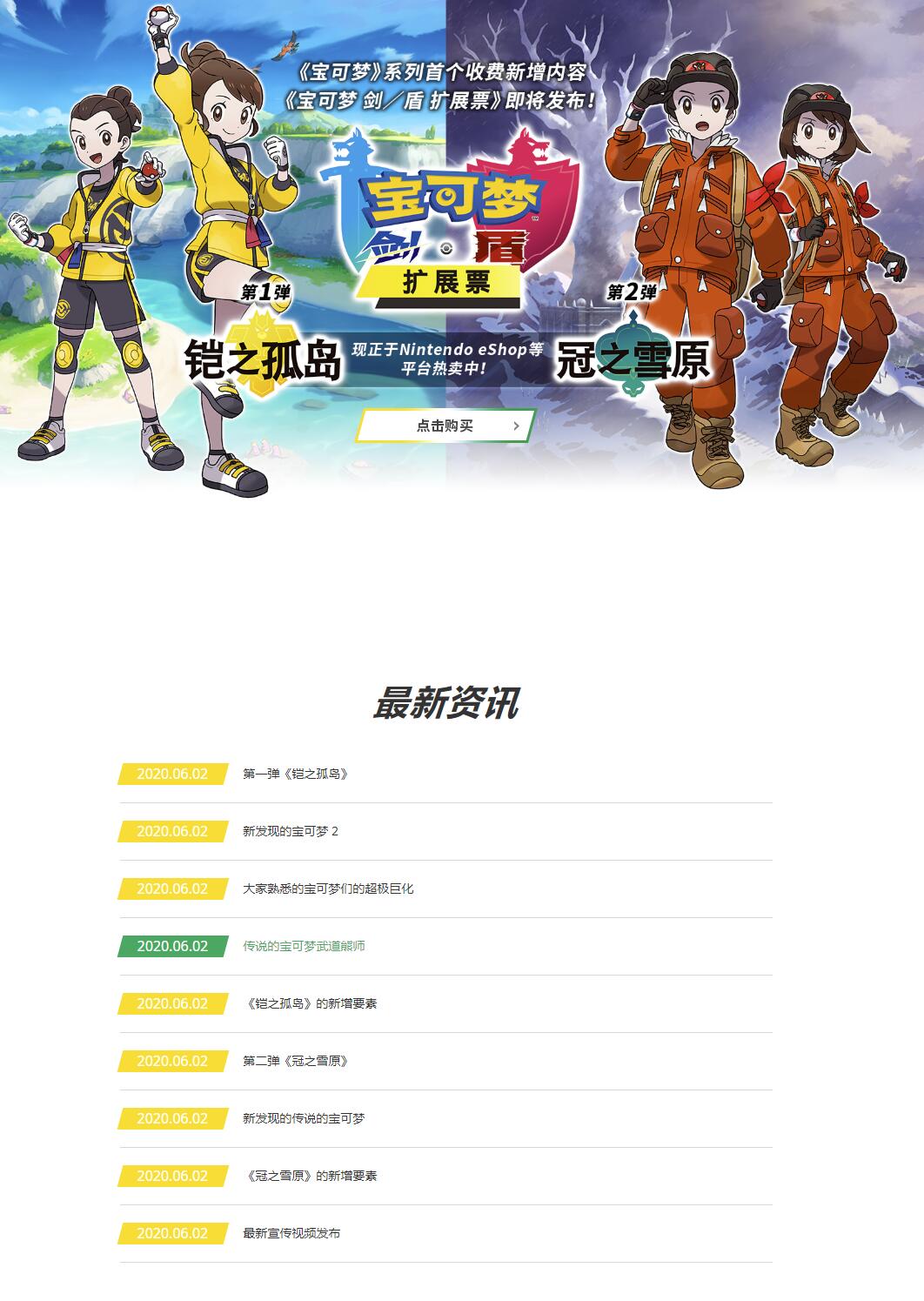 《宝可梦 剑/盾》官网公布扩展票全新资讯