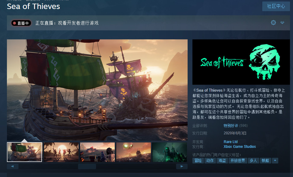 昨天正式在Steam解锁发售的《盗贼之海》,游戏口碑看起来还不错。截止到目前,本作在Steam上获得玩家“特别好评”评价。目前共有571偏评价,好评率为87%。