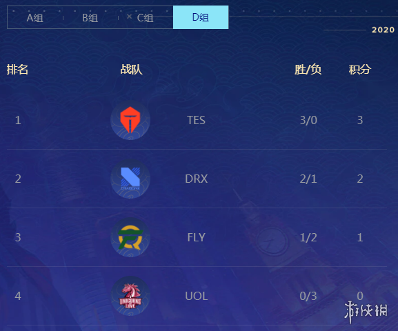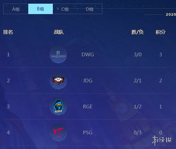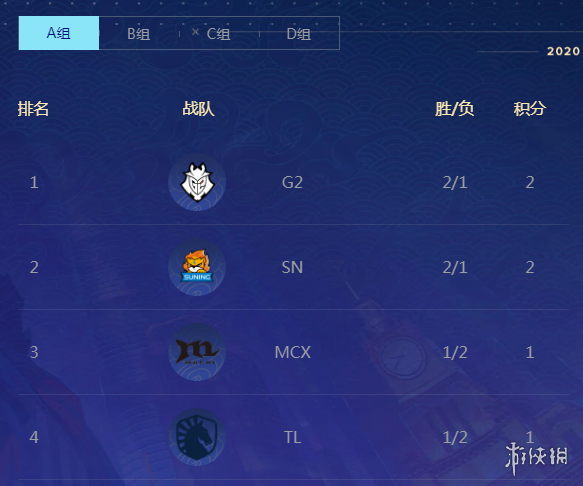 因为今天没有比赛,所以和大家一起来看看各小组的积分情况。