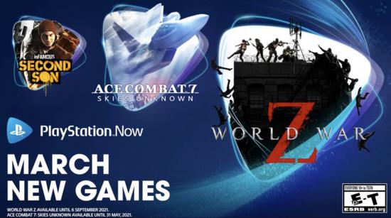 索尼今日公布了自家订阅服务PS Now的3月份新增游戏阵容,包括《皇牌空战7》、《声名狼藉:次子》、《燥热》和多人游戏《僵尸世界大战Z》。这些游戏将在美国时间3月2日加入PS Now。
