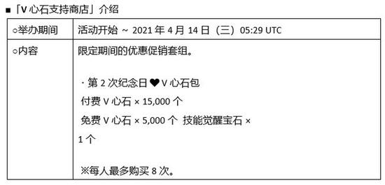 其他还有期间限定附带‘技能觉醒宝石’的‘第 2 次纪念日♥V 心石包’等特别的优惠促销套组。