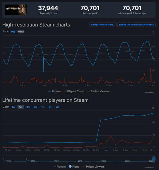玩家人数方面,今天凌晨它也刷新了自己的同时在线人数记录,同时在线人数达到70701人。