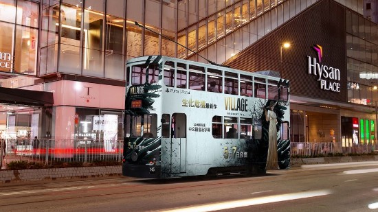 继香港的巴士之后,卡普空新作《生化危机8:村庄》又登上了香港双层电车,身高近三米的蒂米斯特雷库夫人在电车上也格外显眼。整辆电车在香港绚烂的灯光与美丽的夜景的衬托下别有一番风味!