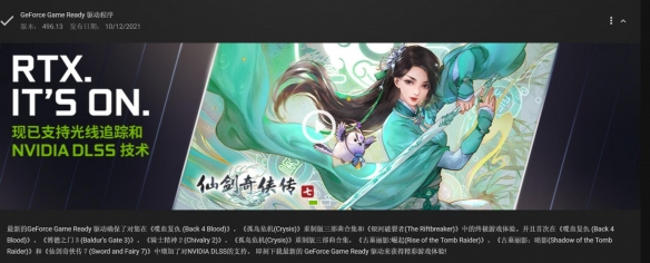 建议您更新至496.13及以上版本。NVIDIA更新显卡驱动请运行GeForce Experience软件,或前往NVIDIA官方网站。