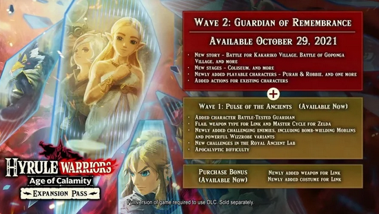 《塞尔达无双:灾厄启示录》的第二个DLC将于10月29日发售,内容包括
