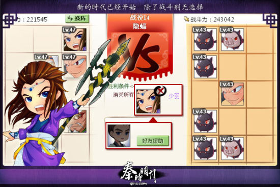战斗的乐趣在于不断挑战更强的对手,但有的时候,我们难免会遇到一些无法企及的敌人,这时难道只能望而却步吗?萌版《秦时明月》类佣兵玩法——好友援助系统,帮你解决战斗路上的强敌!而给予其帮助的玩家,也会获得丰厚的收益!